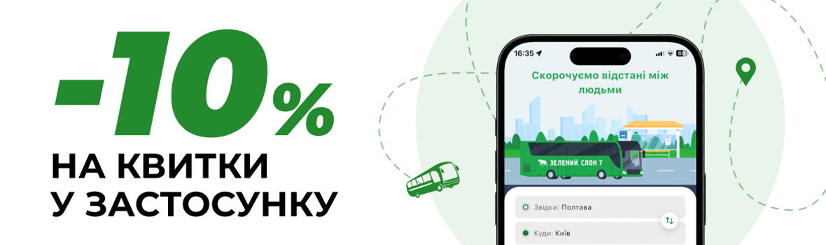 Кожну годину-дві автобуси Зеленого Слона 7 відправляються з Києва, Полтави та Харкова. Також, пропонуємо регулярне сполучення з Пирятин, Хорол, Валки, Чутове.