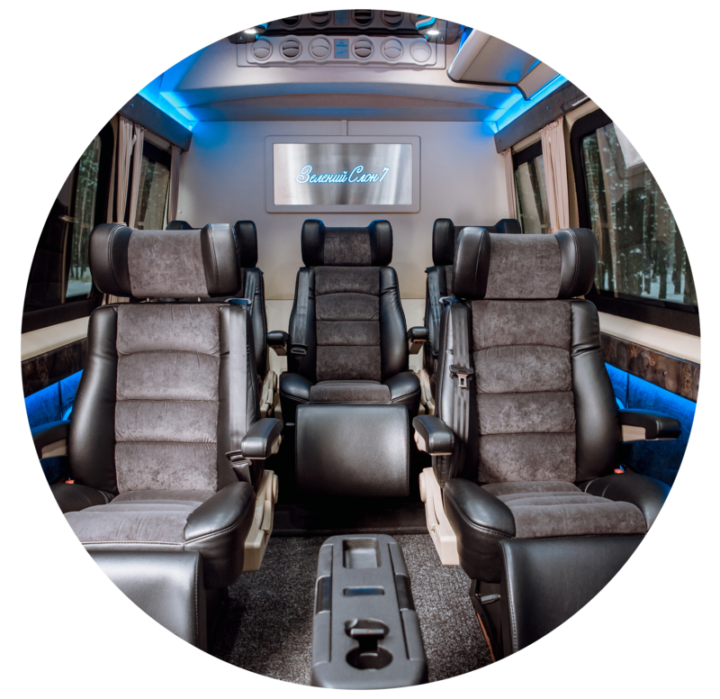 - Комфорт на борту: Автобуси Зелений Слон 7 оснащені комфортабельними кріслами, швидкісним Wi-Fi від Старлінк, USB-зарядками, ременями безпеки, просторим багажним відділенням. Для безпеки найменших пасажирів у кожному автобусі є дитяче автокрісло.