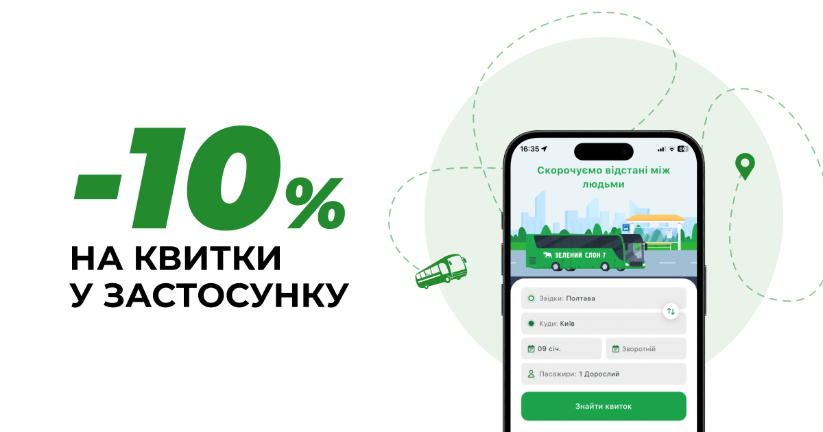 Акції та знижки на автобусні квитки Київ–Полтава–Харків | Зелений Слон 7